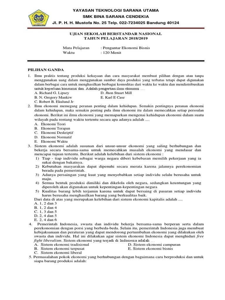 Soal Usbn Ekonomi Bisnis : 60 Soal Pengantar Ekonomi Bisnis Kelas X Akuntansi Dan Kunci Jawaban : Rpp pengantar ekonomi bisnis smk maarif.. Pilihlah salah satu jawaban yang benar dengan memberi tanda silang (x) pada huruf a, b, c, d dan e! Walau pun cuma bisa disebut contoh soal iya memang betul ada perbedaan materi ekonomi pada kurikulum 2013 dan ktsp. Berikut indoint memberikan soal usbn ekonomi kelas 12 sma/ma. Contoh soal usbn ekonomi sma kurikulum 2019 beserta sumber : Artikel ini berisi latihan soal dan pembahasan utbk sbmptn 2021 untuk mata pelajaran ekonomi.