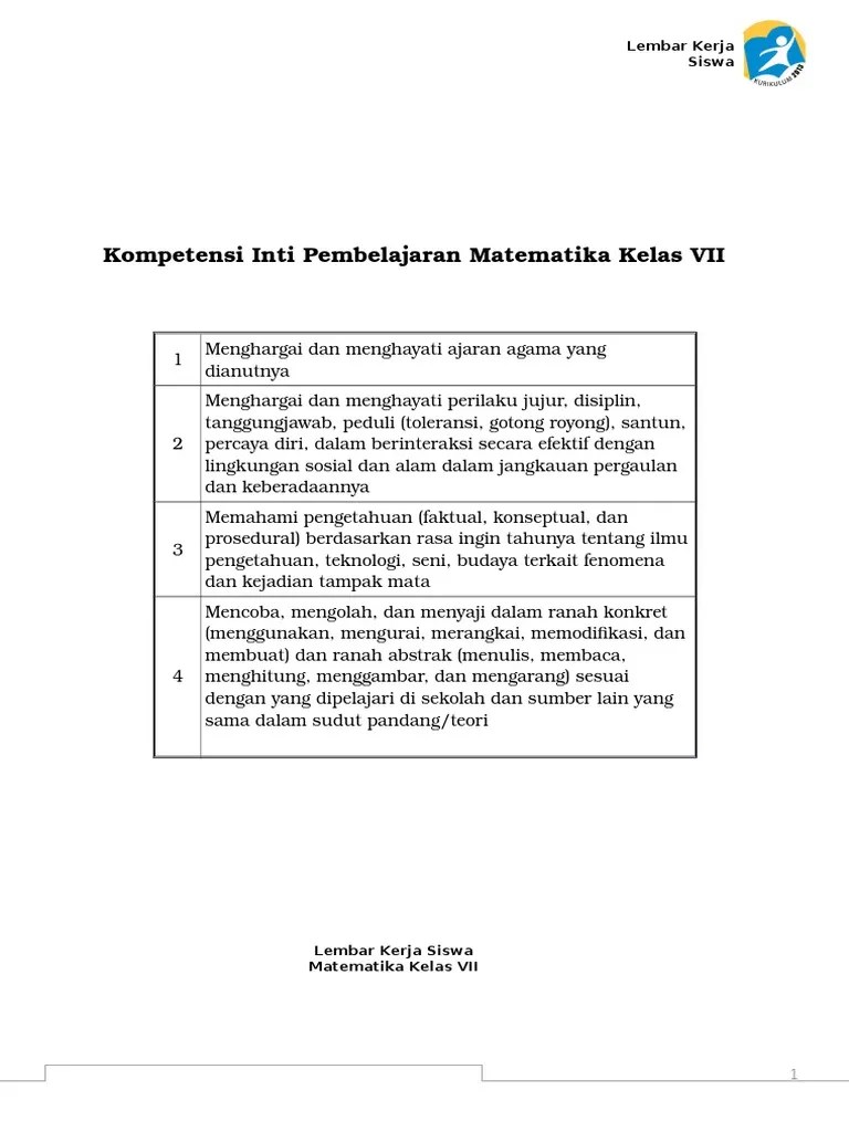 Matematika smp kelas 7 kurikulum 2013 bab perbandingan skala rangkuman materi contoh soal dan pembahasannya matematika smp kelas 7 kurikulum 2013 bab bilangan bilangan bulat dan bilangan pecahan. Rpp 1 lembar matematika kelas 7 smp semester 1 ini dapat anda jadikan sebagai pedoman dalam menyusun perangkat rpp lainnya yang mengacu pada pembelajaran kurikulum 2013 yang mana di dalam rpp ini sudah memuat pembelajaran k13 yang memuat literasi, 4c, hots, dan pembelajaran yang memuat aspek nilai karakter untuk di terapkan pada peserta didik. Kegiatan 1.3 operasi perkalian dan pembagian bilangan bulat ayo. Tujuan dibuatnya lks adalah untuk membantu siswa menyerap materi kurikulum, bagi guru lks sangat membantu sebagai bahan ajar bantu selain buku tek pelajaran. lks yang digunakan dalam pembelajaran di sekolah masih kurang bervariasi dan kurang menarik bagi siswa.
